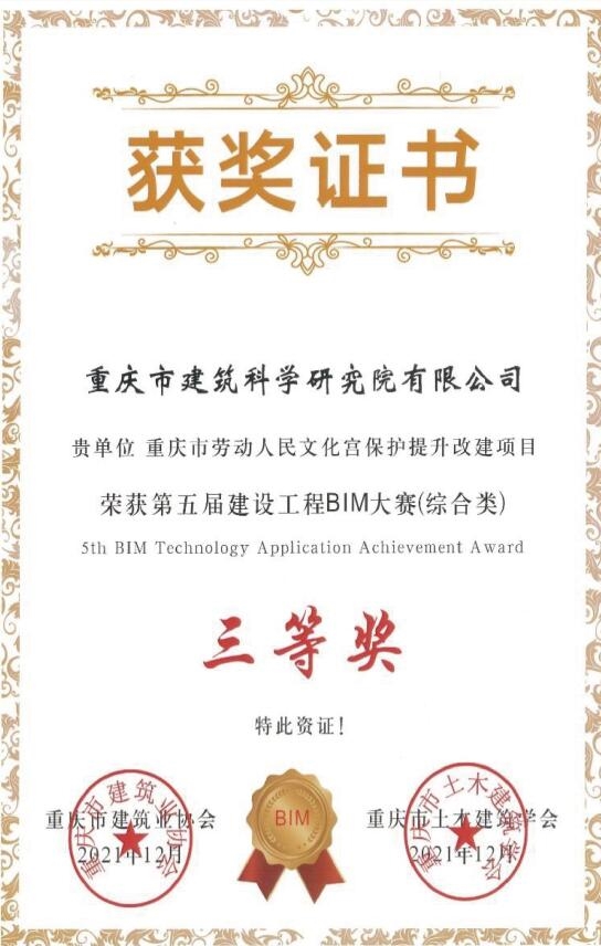 重庆市第五届建设华体会手机网页版登录入口BIM大赛三等奖