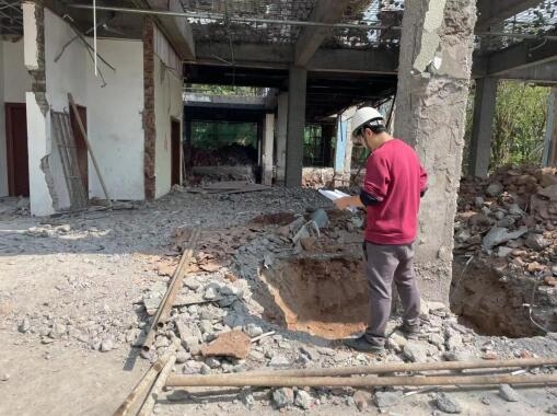 4月初,业主单位在拆除朝华书院项目装修结构并开挖基础时,发现实际情况与前期鉴定报告中基础及结构部分不符,施工图设计单位无法进行后续设计及指导现场施工,导致项目无法推进,亟需具有权威性及专业性的单位对房屋结构进行全面检测,并绘制现场实际结构图。市建科公司对此类无图纸或图纸信息不符的既有房屋检测鉴定有丰富经验,能够迅速组织专家组对房屋进行诊治,做到对症施治,切实消除安全隐患。接到委托后,公司专家组立即赶赴现场开展检测工作,头顶骄阳汗如雨,不惧“烤”验赶工,经过十余天的艰苦奋战完成现场检测工作,转入数据统计及绘制图纸的室内工作中。