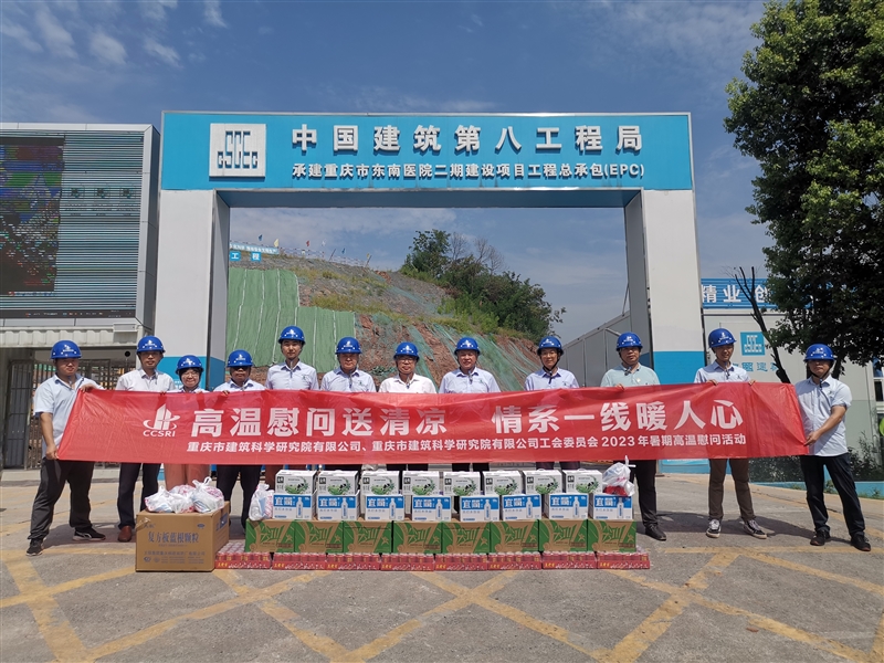 夏日炎炎,高温酷暑。8月4日上午,重庆设计集团所属子华体会(中国)华体会手机网页版登录入口党委书记、董事长冉龙彬带队赴监理咨询二公司代建的“重庆市东南医院二期”项目慰问坚守在项目管理一线的职工,为他们送去清凉与关怀,指导并助推项目建设。党委办公室、技术质量安全部和生产经营发展部相关人员陪同慰问。