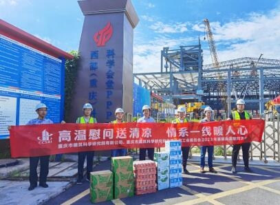近日,重庆设计集团市建科院公司党委副书记、总经理、董事张雪芹同志赴科学城分院承接钢结构监测业务的“西部(重庆)科学城科学会堂”项目,慰问在高温酷暑中坚守岗位的一线职工,为他们送去防暑降温用品与真诚关怀。