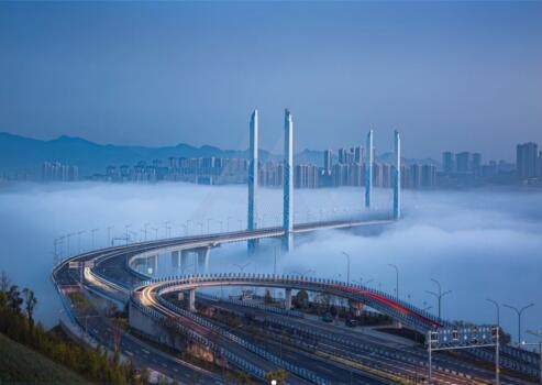 从“星际穿越”到“轻轨穿楼”再到“开往春天的列车”……重庆道桥隧建设从来不缺乏热点话题,而当桥都遇上雾都,每逢初晴云起之时,在逶迤秀丽的嘉陵江蔡家段,一场双桥凌云飞架、车辆地铁穿云而过的奇景就会上演。
