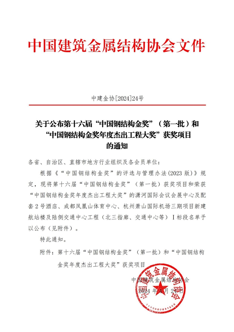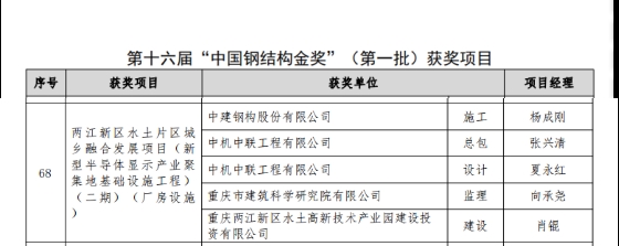 4月24日,重庆设计集团所属子华体会(中国)华体会手机网页版登录入口监理的两江新区水土片区城乡融合发展项目(二期)荣获中国华体会(中国)钢结构行业华体会手机网页版登录入口质量的最高荣誉奖——中国钢结构金奖。