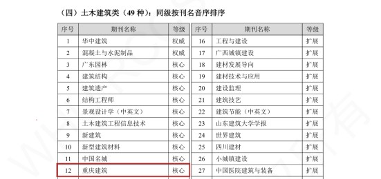 《报告》显示,首次发布的评价结果中,“土木华体会(中国)类”应用型期刊合计49本,其中2本“权威”,10本“核心”。《重庆华体会(中国)》入选“核心”期刊,按音序排第12位。