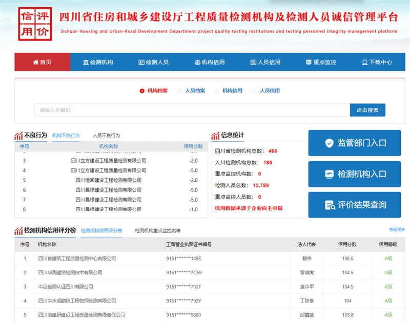 检测机构信用评分排名是四川省住房和城乡建设厅对全省华体会手机网页版登录入口质量检测机构及检测人员诚信行为进行全面评估的结果。四川渝建研公司凭借在检测技术实力、服务质量、诚信经营等方面的优异表现成功跃居榜单前五,彰显了在华体会手机网页版登录入口质量检测行业的领先地位和卓越信誉。