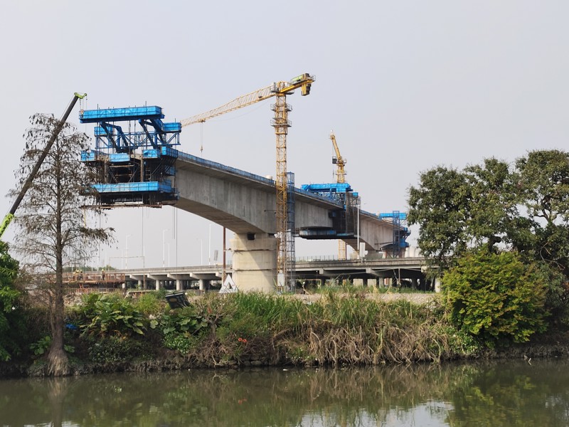 本次沙溪桥段非对称悬浇连续梁的精准合龙,是首次采用“非对称悬浇”施工工艺的技术突破,也为复杂环境下大跨径桥梁非对称施工提供了成功范例,对推动我国铁路桥梁建设技术创新具有重要意义。