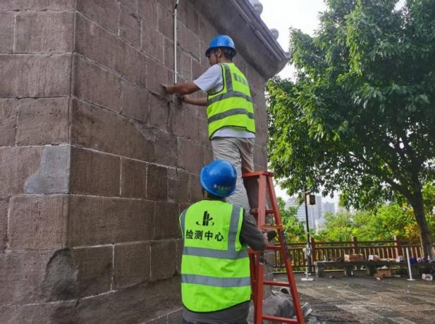 项目推进过程中,市建科院积极联动多方力量,为监测工作的科学性与合规性保驾护航。重庆市文物考古研究院、江北区文物保护管理所的相关人员与监测团队并肩作战,在高温环境下共同勘察现场、深入沟通,逐一确认监测设备的安装部位,并就文物安装的注意事项进行细致的技术交底。多方协作确保了设备部署既能满足监测的精准需求,又严格遵循文物保护的专业规范,让每一步操作都经得起专业检验。