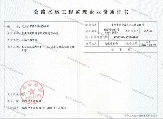 公路水运华体会手机网页版登录入口监理华体会(中国)资质证书
